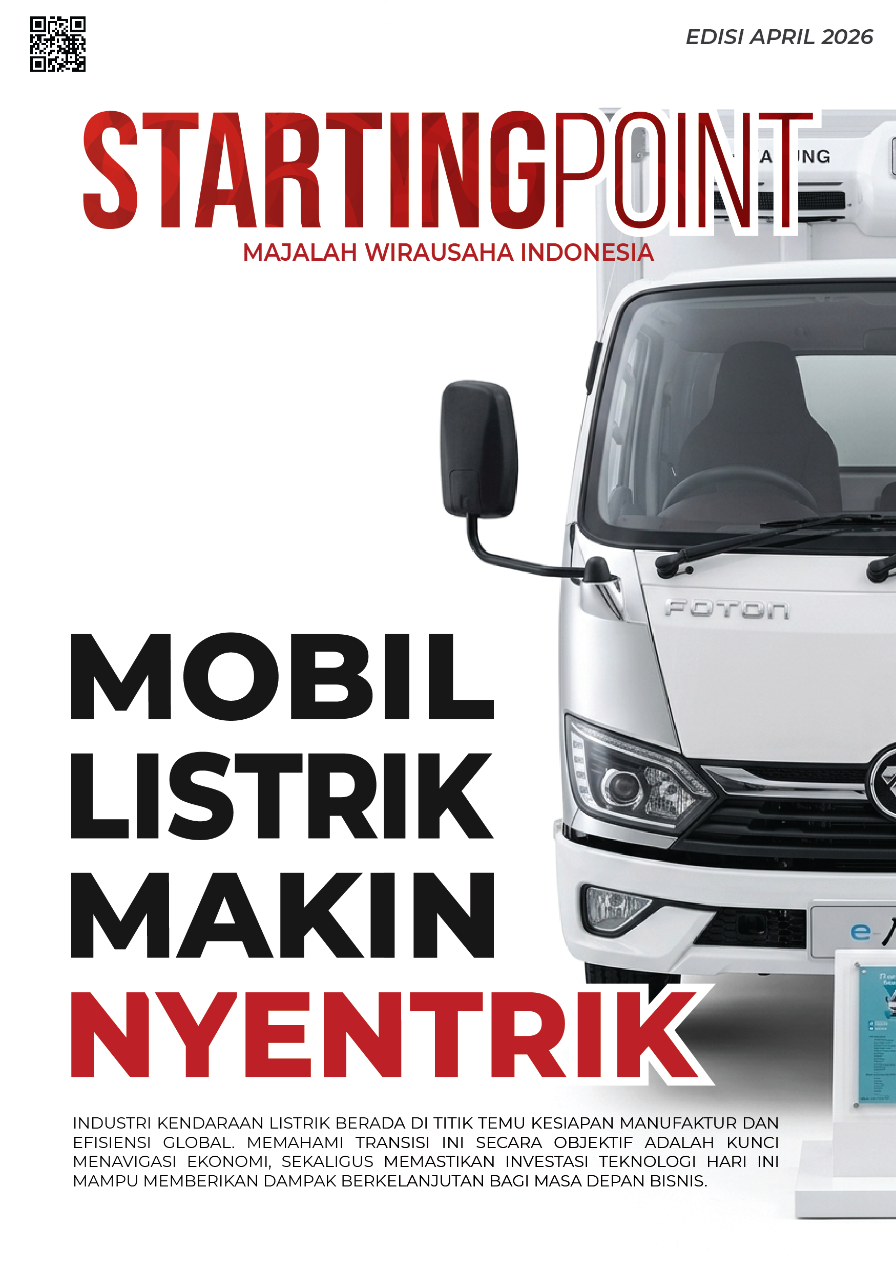 Efisiensi bukan lagi pilihan, melainkan keharusan bagi setiap lini bisnis yang ingin bertahan di tengah volatilitas energi global. Dalam edisi perdana Startingpoint April 2026, kami membawa Anda langsung ke jantung transformasi logistik nasional melalui laporan eksklusif dari lantai GIICOMVEC 2026. Dengan tajuk utama “Mobil Listrik Makin Nyentrik”, kami membedah bagaimana kendaraan listrik komersial telah berevolusi dari sekadar prototipe menjadi instrumen pemangkas biaya operasional yang nyata. Mulai dari teknologi solar panel mandiri hingga debut dobel kabin elektrik pertama di Indonesia, edisi ini adalah kompas bagi para pengusaha untuk mengonversi inovasi menjadi profitabilitas. Selamat menjelajahi masa depan bisnis melalui flipbook interaktif kami di bawah ini.